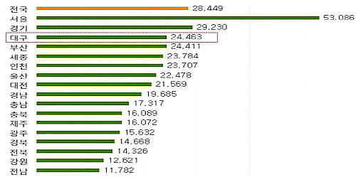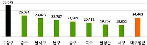 2014년 말 기준 대구지역 아파트 평균가격은 가구당 2억4463만원을 기록, 전국 3위로 올라섰다. 1위는 서울 5억3086만원이며 2위는 경기 2억9230만원이다. 이와는 대조적으로 인천은 가구당 평균 2억3707만원에 머물러 부산과 세종에도 뒤졌다. 부산과 세종 가구당 평균가격은 각각 2억4411만원·2억3784만원이다.