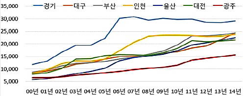 한편, 서울·경기와 함께 수도권 한 축을 담당했던 인천은 경제자유구역 개발로 한 단계 도약을 예상했지만 기대만큼 따라주지 못했다. 금융위기 이후 개발이 지연된 대다 미분양이 발생하면서 아파트시장이 침체된 까닭이다.