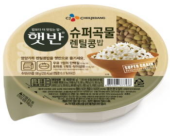 '햇반 슈퍼곡물 렌틸콩밥'은 미국의 건강전문지 '헬스(Health)'가 선정한 세계 5대 건강식품중 하나인 렌틸콩이 들었다. 렌틸콩은 단백질이 풍부하고 현미보다 약 8배 많은 식이섬유가 함유됐으며 최근 유명 연예인들이 건강식으로 즐기면서 큰 인기를 끌고 있는 곡물이다.