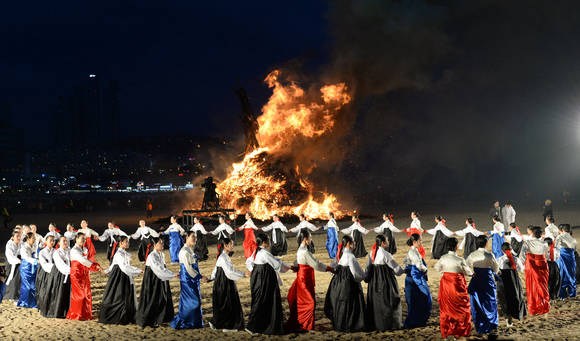 활활 타오르는 달집 아래 해운대달맞이민속보존회의 축하공연과 관광객들과 함께 하는 강강술래, 대동놀이로 축제는 막을 내리게 된다.