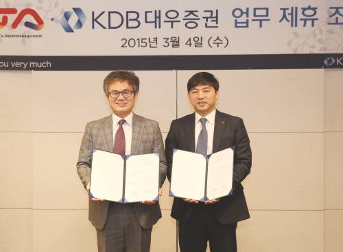 [프라임경제] KDB대우증권은 4일 서울 여의도 본사에서 유동식 스마트금융본부장과 김정기 에이티(AT)에셋 대표이 판매채널 확대를 위한 업무 제휴 조인식을 가졌다고 5일 밝혔다.