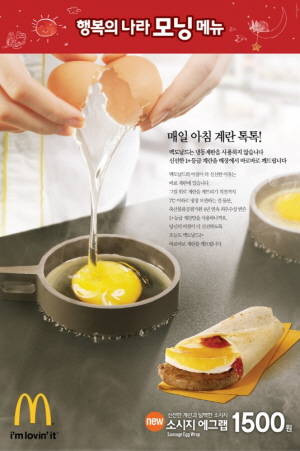 [프라임경제] 맥도날드(대표이사 조 엘린저)는 10일 신제품 '소시지 에그랩(Sausage Egg Wrap)'을 출시하고 '행복의 나라 모닝 메뉴(Happy Value Morning Menu)'로 선보인다.