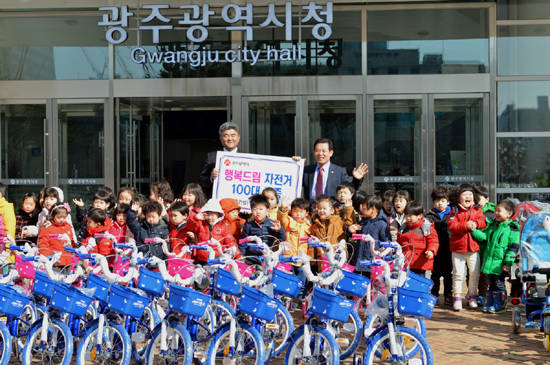 시는 이날 기증받은 '희망드림 자전거'를 시청과 5개 자치구에 비치해 청사를 찾는 어린이들이 무료로 탈 수 있도록 제공할 계획이다.