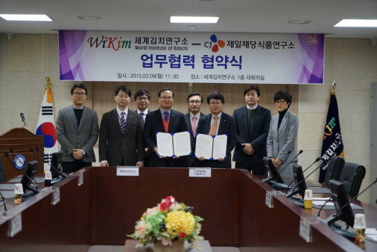 [프라임경제] CJ제일제당은 9일 광주시 남구 임암동 소재 세계김치연구소 회의실에서 세계김치연구소와 김치산업 발전을 위한 연구개발 및 정보공유 등 상호협력 체제를 구축하는 업무협약을 체결했다.