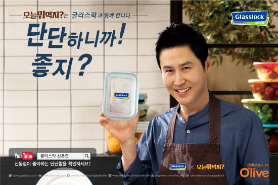 주방 일에 서툰 신동엽이 글라스락을 떨어뜨려도 충격에 강한 내열강화유리소재로 깨질 염려 없이 안심하고 사용할 수 있다는 '단단하니까 좋지?'라는 콘셉트로 신동엽 특유의 표정 연기와 성인 개그가 주부들의 시선을 끈다.