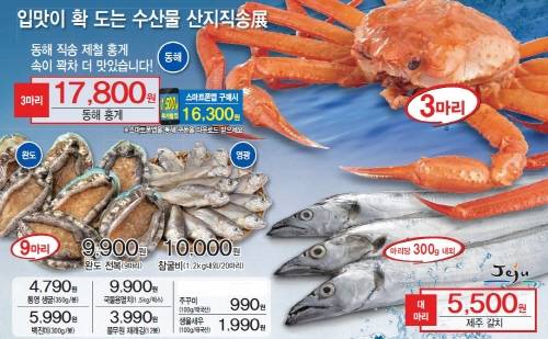 이 밖에도 국산 꽃게는 정상가에서 30% 할인된 한 마리 1990원, 명태 코다리는 4마리 1코에 4990원, 통영 생굴은 350g 한 봉에 4790원에 판매하며 국산 국물용 멸치(1.5㎏)는 9900원에 구매할 수 있다.
