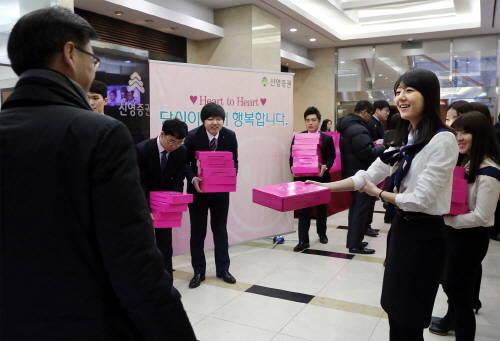 [프라임경제] 신영증권은 13일 아침 출근길에 전 임직원들에게 '화이트데이' 선물을 증정하는 행사를 가졌다.