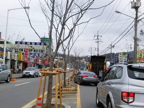 [프라임경제] 전남 순천시가 아랫시장(아랫장)을 관통하는 장평로 630m 중앙선 구간에 느티나무 가로수를 식재한 뒤 차로를 좁히는 바람에 우려했던 상습 차량정체가 빚어지고 있다.