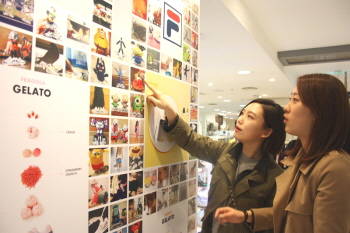 고객이 휠라 공식 인스타그램(@fila_korea) '젤라티커' 이벤트에 직접 찍어 응모한 이미지를 한데 모아 소공동 롯데백화점 본점 휠라 매장 VMD(비주얼 머천다이징)에 적용, '젤라티커 존(Zone)'을 구성한 것.
