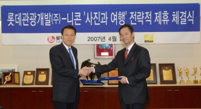 *사진설명: 좌) 롯데관광개발(주) 유동수 대표이사 우) ㈜니콘이미징코리아 야마구치 노리아키 대표이사