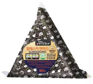 알래스카 연어 삼각김밥은 갈릭마요소스와 고추냉이소스를 함께 버무린 연어 토핑을 얹어 특유의 고소함을 더했다.