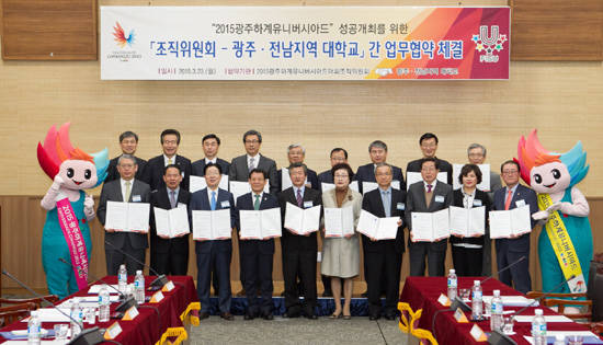 [프라임경제] 2015 광주하계유니버시아드의 성공 개최를 위해 광주U대회 조직위원회(위원장 윤장현⋅김황식)와 광주⋅전남지역 대학교가 손을 잡았다.