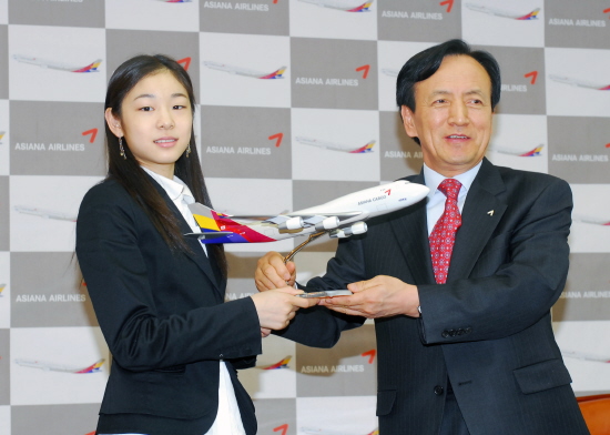 김연아 선수는 지난 2006 국제빙상연맹(ISU) 피겨스케이팅 시니어 그랑프리 파이널 1위를 차지한데 이어 2007 국제빙상경기연맹(ISU) 세계피겨선수권대회 여자 싱글 3위에 입상한 바 있다. 아시아나는 김연아 선수의 끊임없는 노력을 통해 성장하는 모습이 자사의 기업이미지와 부합되어 명예홍보대사로 선정했다고 밝혔다.