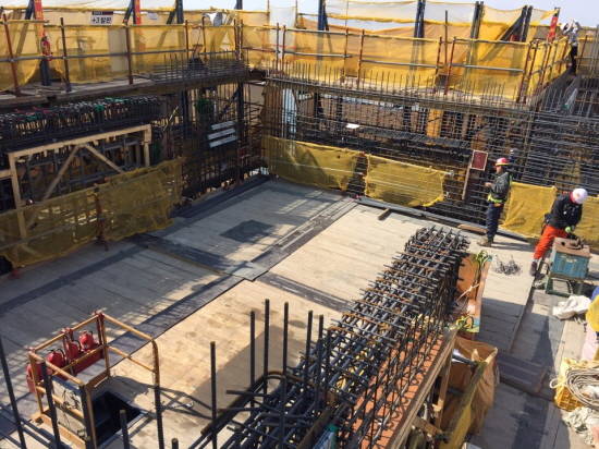 현재까지 완성된 층수는 정확히 101층이었다. 지난 24일 가졌던 100층 돌파 기념식 이후 공사가 이어져 한개 층 더 올라선 것이다. 현재 101층까지 코어월(철근으로 만든 벽)공사가 완성된 상태였다.