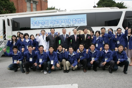 “농촌순회의료봉사단 출범식”에 참석한 정대근 농협중앙회장은 “국내 최고의 의료기관인 서울대병원과 함께 의료봉사활동을 함으로써 농업인의 건강과 복지 향상에 기여할 수 있어 매우 기쁘게 생각한다”면서 “농협은 지난 1967년부터 40여년간 농촌지역의 보건과 의료 복지 증진을 위해 약 4백여원을 투입, 330여만명에게 무료진료 등 각종 의료서비스를 제공해 왔으며 농촌지역 무료 진료활동을 계속 확대해 나갈 계획”이라고 밝혔다.