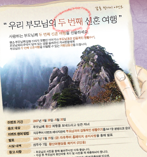 한편, 당첨된 수기자는 황산 여행을 다녀 온 뒤 부모님의 황산 여행기와 사진을 자유투어에 제출하면 된다.