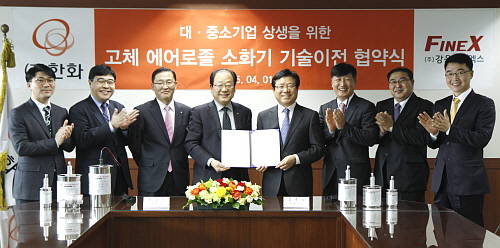 특히, 한화는 고체에어로졸 소화기 사업 관련 특허를 별도 로열티 없이 사용할 수 있게 하고, 개발 노하우 및 생산기술 교육을 실시하는 등 강운파인엑스가 고체에어로졸 소화기사업을 성공적으로 추진할 수 있도록 지원했다.