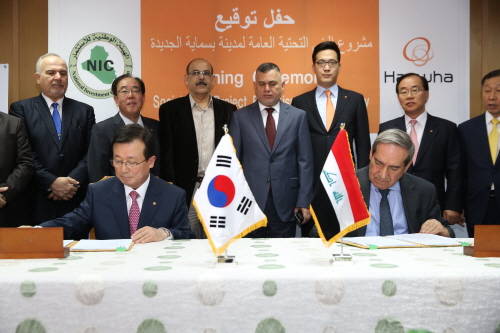 바하 알 아라지 부총리, 자와드 알 부라니 의회 경제부장 등 이라크 정부인사들이 참석한 가운데 비스마야 신도시 소셜인프라 추가 공사에 대한 계약식을 진행했다.
