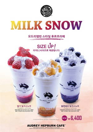 오드리헵번 카페 관계자는 "우유와 크림의 부드러운 조화와 과일 특유의 상큼함이 특히 어린 아이들과 여성들에게 많은 인기를 얻을 것으로 예상된다"며 "사이즈가 업 되어 제공되는 만큼 고객들의 만족도도 업될 수 있을 것"이라고 말했다.