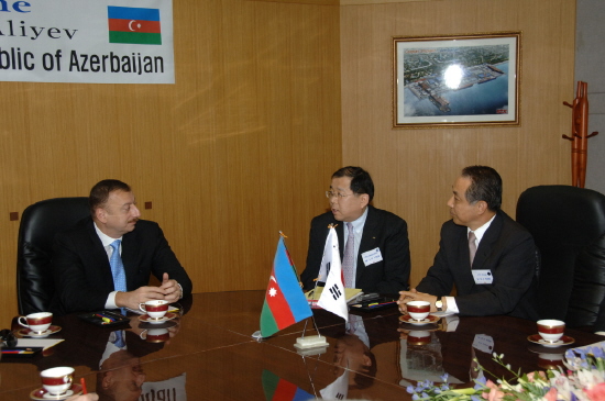 이날 일함 알리예프 아제르바이잔 대통령은 강덕수 회장과ㅑ 환담을 나누고 조선·에너지·자원개발·항만·해양신도시 건설 등에 대한 의견을 교환했다.