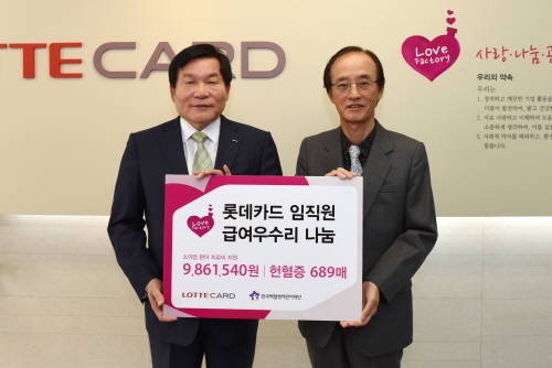 롯데카드는 2011년부터 임직원 사회공헌기금을 적립해 매년 조성된 기금을 어려운 이웃을 돕는데 사용하고 있다. 한국백혈병어린이재단 부산 나음소아암센터는 부산지역의 소아암 환아들을 위한 심리 치료 및 상담 등의 서비스를 제공하는 곳으로 올해 마련된 임직원 사회공원기금과 헌혈증은 소아암 환아 치료를 지원하는데 사용될 예정이다.