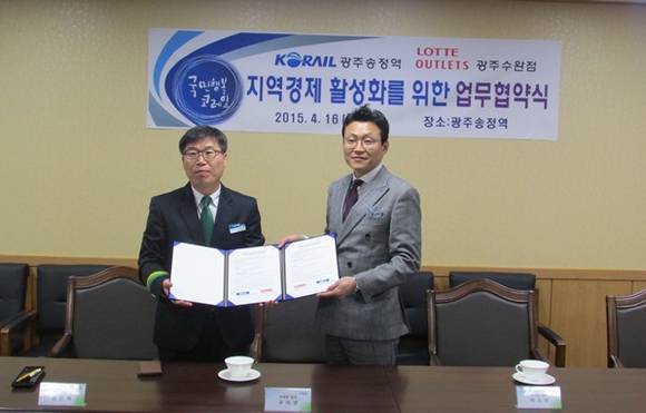 [프라임경제] 롯데아울렛 수완점과 코레일 광주송정역이 16일 호남고속철 개통을 기념해 지역경제 활성화 및 사회공헌활동 관련 업무협약(MOU)을 체결했다.