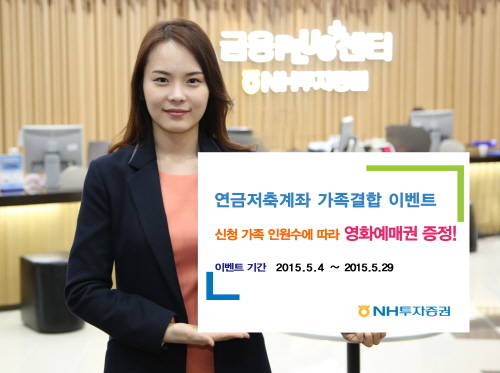 [프라임경제] NH투자증권은 오는 29일까지 연금저축계좌에 가입한 후 가족결합을 등록한 고객을 대상으로 '연금저축계좌 가족결합 이벤트'를 실시한다고 4일 밝혔다.