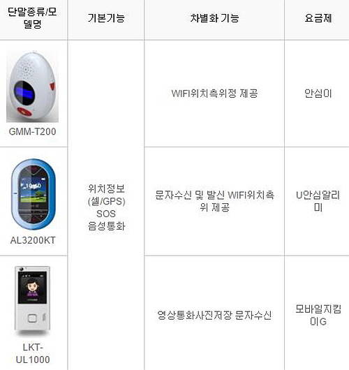 요금제는 △안심이 △U안심알리미 △모바일지킴이G 포함, 3종이다. 안심이는 기본료 월 5000원과 관제 부가서비스 월 2000원으로 이뤄진다. U안심알리미와 모바일지킴이G는 각각 월 8000원·1만원이다.