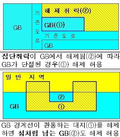 경계지역 그린벨트 해제요건도 보다 느슨해졌다. 해제된 집단취락에 의해 단절된 1만㎡ 미만 구역은 함께 해제될 수 있도록 규제를 완화했으며, 개발제한구역 경계선이 관통하는 1000㎡ 이하 토지도 함께 해제해 토지 활용도를 높였다.