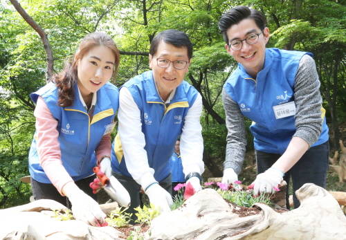 이날 신한카드 봉사단은 구역별 3개조로 꽃과 나무를 심는 봉사활동을 진행했다.
