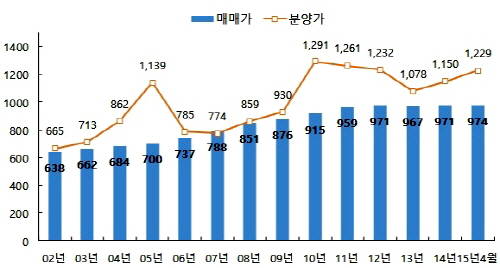 반면 오피스텔 분양가는 매년 상승추세로 오피스텔 투자 시 주의가 필요하다는 조언이 나온다. 3.3㎡당 연도별 분양가는 △2012년 1232만원 △2013년 1078만원 △2014년 1150만원 △2015년 1229만원이다.