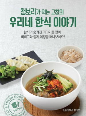 이번 비비고 신메뉴는 알곡이 한층 굵어 씹는 맛이 좋은 전라도 보리로 밥을 지어 특별함을 더했다. 메뉴 중 '도토리 묵과 보리밥'은 감칠맛 나는 육수에 전라도 보리밥과 채 썬 구즉 도토리묵, 김치, 돌나물, 오이를 함께 말아 먹는 여름 별미다.