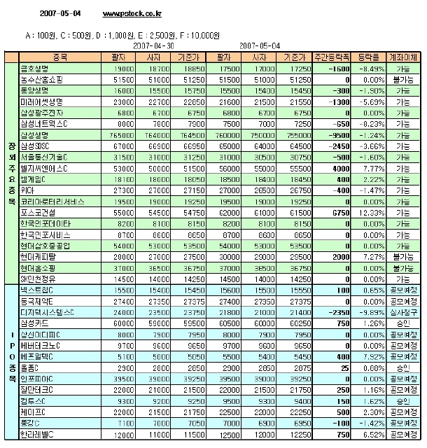 [프라임경제]5월 첫째주는 장외주요 종목들이 4월의 뜨거웠던 시장 열기를 식히는 한주였다.