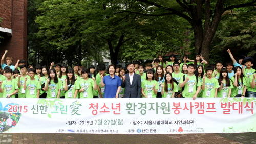 [프라임경제] 신한은행은 청소년들에게 환경의 소중함을 알리기 위해 27일부터 29일까지 충청남도 서산시 운산면 일대에서 '2015 신한그린愛 청소년 환경 자원봉사 캠프'를 개최한다고 27일 밝혔다.