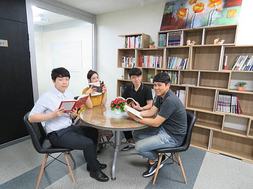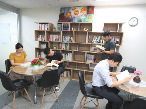 전 직원이 자발적으로 책을 기부했고 회사 측은 도서 구비를 위한 책꽂이와 테이블, 의자 등 가구를 구입해 사무실 한 편을 단장했다. 딱딱한 사무실 공간이 편안한 휴식의 공간으로 재탄생한 것.