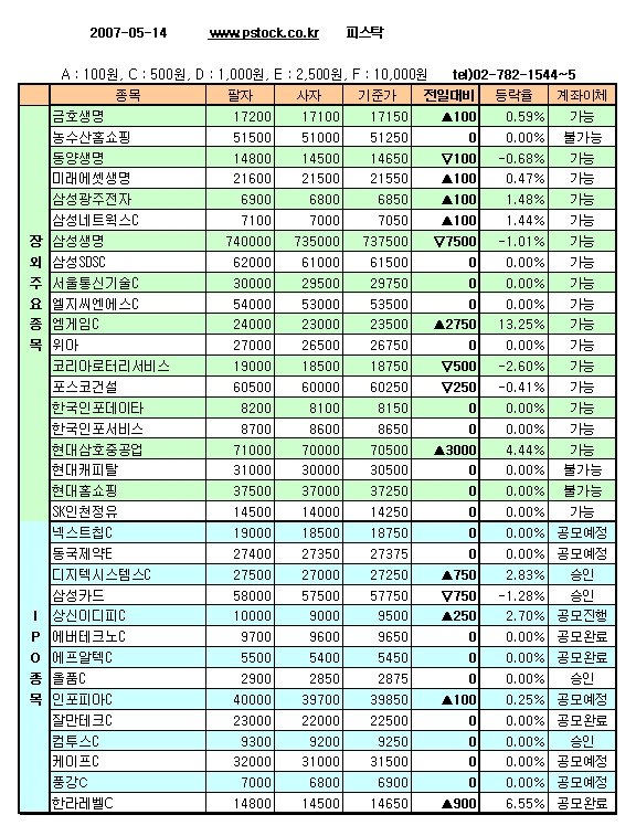 기업공개(IPO) 종목에서는 지난주 강세를 보였던 디지텍시스템즈가 이날도 2.83% 상승하여 2만7250원을 기록한 반면, 삼성카드는 좀처럼 상승하지 못하고 1.28% 하락했다.