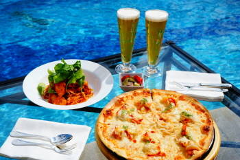 제주신라호텔 풀사이드 바에서는 오전 10시부터 자정까지 특별한 기념일에 레스토랑에서 즐기는 고급 요리 랍스터가 핫도그, 샌드위치, 피자, 스파게티와 만나 야외 풀 사이드 바 이색 메뉴로 제공되는 중이다.