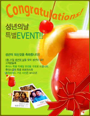 21일에 성년이 된 성인고객이 방문할 경우 후터스 특별 칵테일 한잔이 무료로 제공되고 후터스걸의 특별 퍼포먼스와 폴라로이드 기념 사진촬영까지 함께 제공할 예정이다.