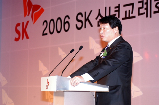 [프라임경제]최태원 SK그룹회장이 2일 워커힐 비스타홀에서 최태원 SK㈜ 회장, 최신원 SKC회장, 조정남 SK텔레콤 부회장 등 계열사 CEO 등 약 3백여명이 참석한 가운데 “지난해 매출 60조, 수출액 200억달러 돌파 등 창사 이래 최고의 해를 보냈다”며 3대 핵심과제로 ▲ 중국 중심의 글로벌 전략을 통한 성장, ▲ “따로 또 같이” 실천력 제고, ▲ 행복나누기의 확산을 제시했다.
