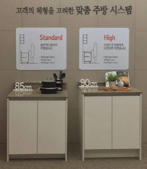 드림키친은 요리하는 남성을 위해 주방작업대 높이를 일반보다 5㎝ 높인 게 특징이다. 또한 요리하는 사람들 마음을 사로잡기 위해 주방 곳곳에 수납공간을 마련했다.