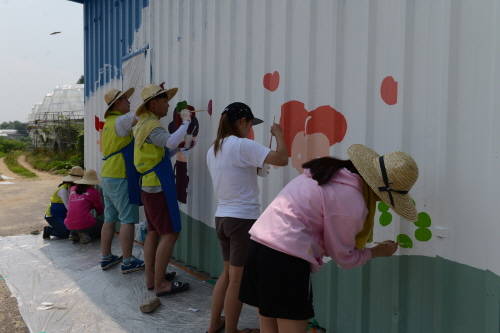 [프라임경제] NH농협손해보험(대표 이윤배) 헤아림 봉사단은 이화여대 봉사동아리 '담이랑'과 함께 1사1촌 자매마을인 경기도 이천시 율면 도달미 마을에서 벽화를 그리는 봉사활동을 실시했다고 28일 밝혔다.