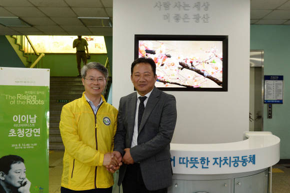 광산구는 기증받은 이이남 작가의 작품 중 '아사천에 매화꽃이 피었네'는 구청에, '스타워즈-문명전투도'는 장덕도서관에 각각 전시하고 있다.