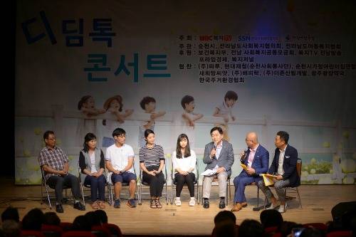 개그맨 황기순과 박마루가 진행한 콘서트는 조충훈 시장의 '힐링나눔 특강'에 이어 디딤씨앗통장 후원자 및 수혜자, 조충훈 시장과의 공감 토크, 기업 및 단체에서 후원한 1400만원의 후원금 전달식으로 꾸며졌다.