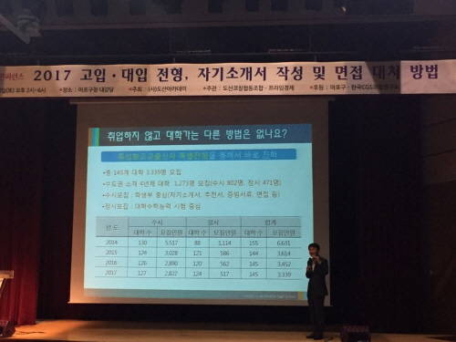 이번 콘퍼러스에서는 중·고등학생과 학부모를 대상으로 2017년 고입·대입 전형을 위한 자기소개서 작성과 면접에 대처하는 방법을 자세히 소개했다.
