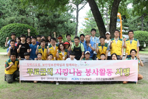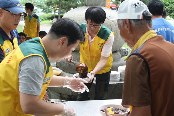 한국남동발전 이영재 보안정보전략실장과 나눔봉사단 40여명은 17일 초복을 맞아 진주 상평동 송림공원에서 지역 어르신들을 위해 자장면 봉사에 나서 구슬땀을 흘렸다.