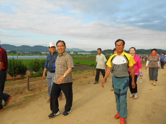 법수면건강위원회가 주관하고 함안군보건소가 후원한 이날 행사는 건강체조를 시작으로 법수공원에서 출발해 악양둑방길로 이어지는 왕복 4㎞ 구간을 걸었다.