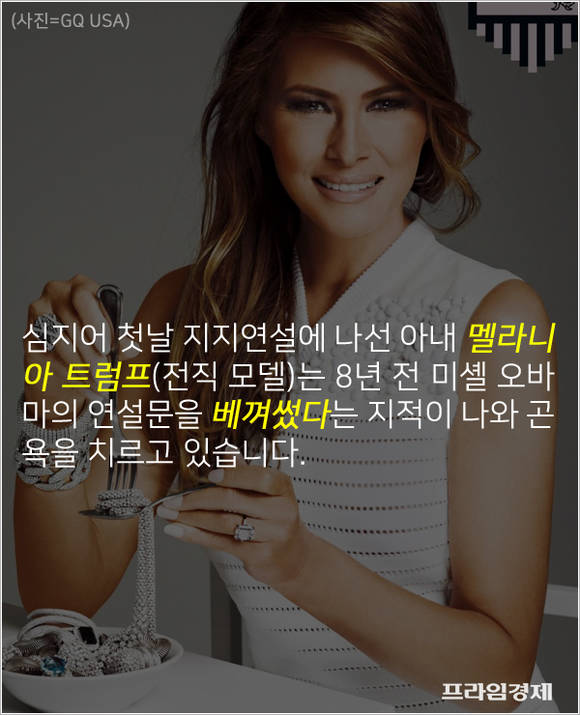 심지어 전당대회 첫날 지지연설에 나선 아내 멜라니아 트럼프가 영부인 미셸 오바마의 8년 전 연설문을 베꼈다는 지적이 나와 곤욕을 치르고 있습니다.