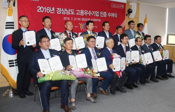 [프라임경제] 경상남도는 21일 2016년도 고용 우수기업 인증서 수여식을 개최했다.