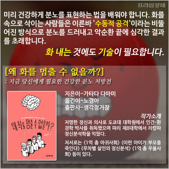 [프라임경제] 분노를 자각하는 것이 얼마나 중요한지 모른 채 억누르기만 한 사람은 화내는 것 자체에 공포를 느끼거나 심하면 인간관계를 망치고 스스로를 해칠 수도 있습니다.