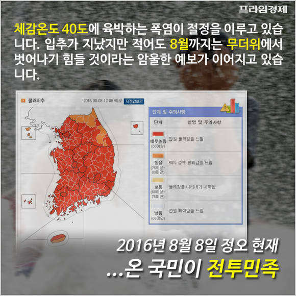 [프라임경제] 체감온도 40도에 육박하는 폭염이 절정을 이루고 있습니다. 입추가 지났지만 적어도 8월까지는 더위에서 벗어나기 힘들 것이라는 암울한 예보가 이어지고 있습니다.